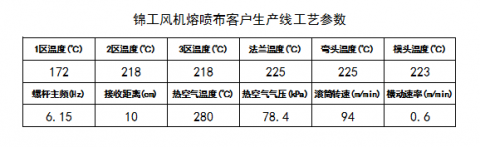 以下是錦工拿到的某客戶工藝的一手資料, 該客戶熔噴布檢過濾效率多次抽檢超96%,我們除了做羅茨鼓風機專業外,做熔噴布真的是外行,因此,以下內容僅供參考,以免參數錯誤產生誤導。