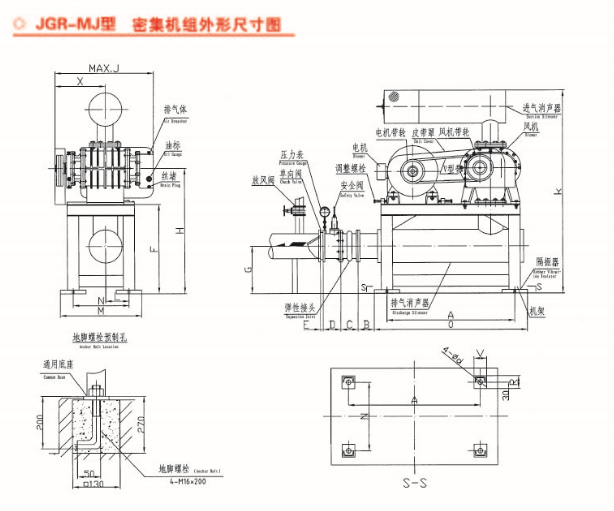 首先,一套完整的羅茨鼓風(fēng)機包括:風(fēng)機主機、共享底座、電機、電機坐桿、皮帶、皮帶輪、皮帶護罩、三通、泄壓閥、逆止閥、壓力表、入口消音器、出口消音器、防震接頭、防震腳墊、配套螺絲等組成。