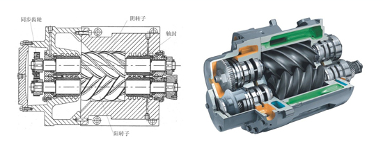 螺桿主機作為螺桿風機的核心部件,其結構直接決定了風機性能的優劣。螺桿主機主要由機殼、螺桿轉子、齒輪箱、軸承、軸封等主要部件構成。